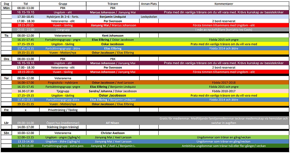 Träningstider i PDF-format för utskrift.